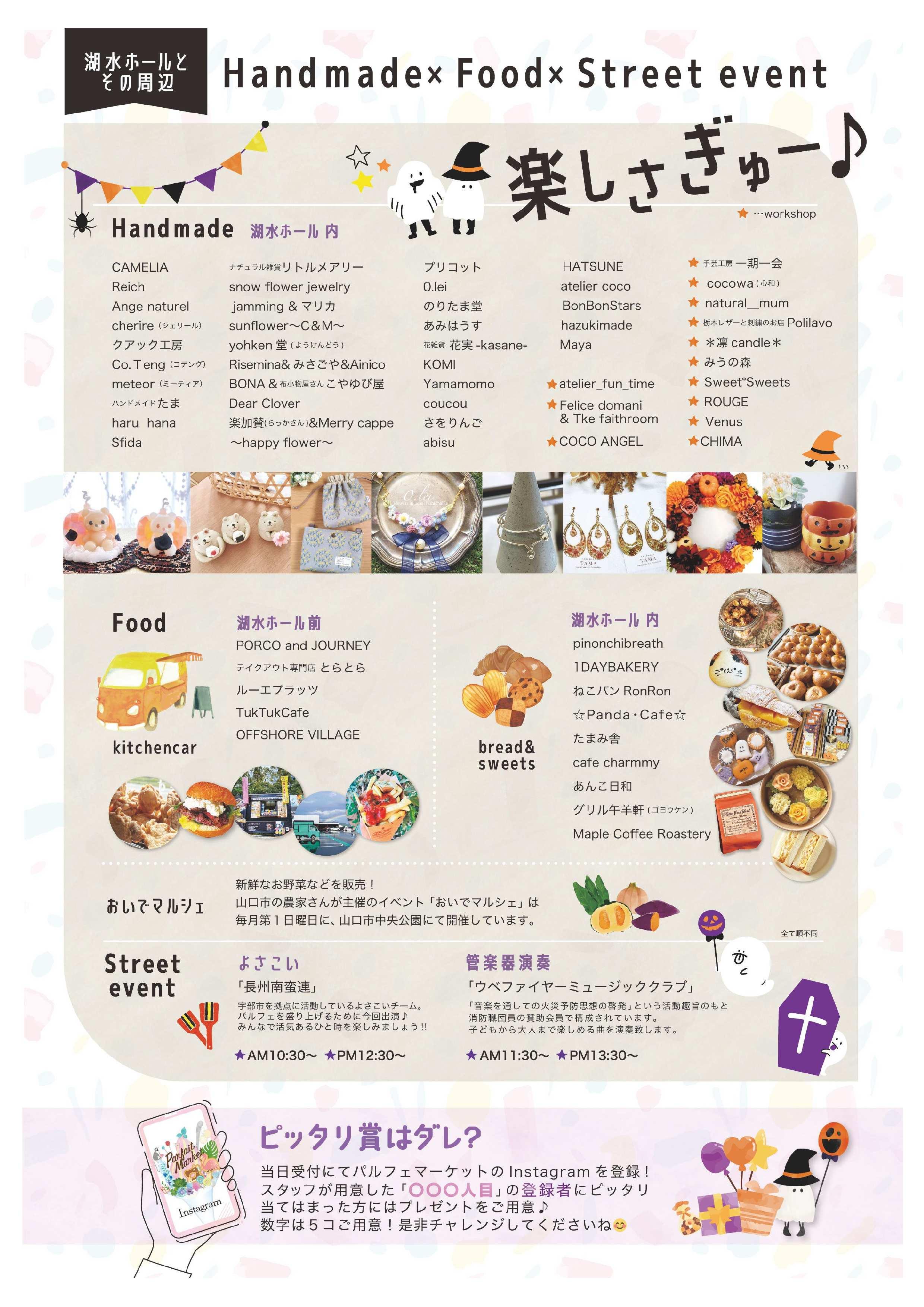 湖水ホール周辺でハンドメイド雑貨の販売やワークショップ、ステージイベントなど盛りだくさんのパルフェマーケットを開催!