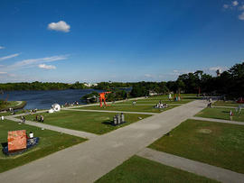 1961年、野外空間を舞台として「第1回宇部市野外彫刻展」が開催されました。以来、ビエンナーレ方式(隔年)で開催を続け、国内外で最も歴史ある彫刻展として発展してきました。