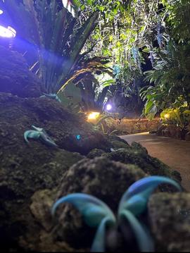 植物館を夜間開館し、ヒスイカズラを中心に幻想的にライトアップします。