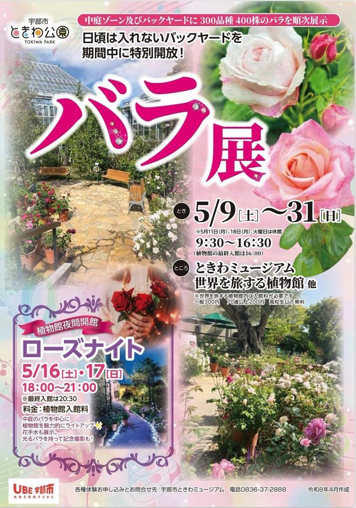 ときわミュージアムで生まれたオリジナルバラ「宇部百花」を展示します。